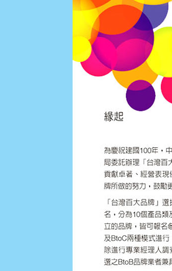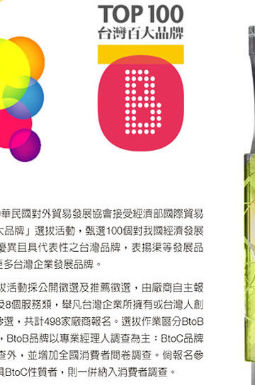 展現台灣本土品牌精神及文化,鼓勵績優品牌企業,經濟部國貿局於建國百年首度舉辦「台灣百大品牌選拔活 動」。